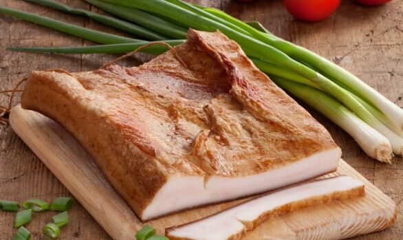 Polski boczek nie ma sobie równych. Czasem więc trzeba go dobrze przyprawić zrolować i pokroić na kanapkę. Mówisz – masz! Teraz już tylko wiejski chleb i sarepska musztarda. Apetycznie!